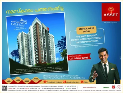 Press Release (ePRNews.com) - Kochi, India - Oct 27, 2017 (UTC) - Asset Homes the prominent builders in Cochin, always offers innovative, qualitative, functional, sustainable and money worth homes for customers. The firm proudly present Asset Gateway the first branded luxury apartment project in Pathanamthitta and the stone laying ceremony will occur today. Asset Gateway is located at ring road, Pathanamthitta and location are close to notable landmarks.